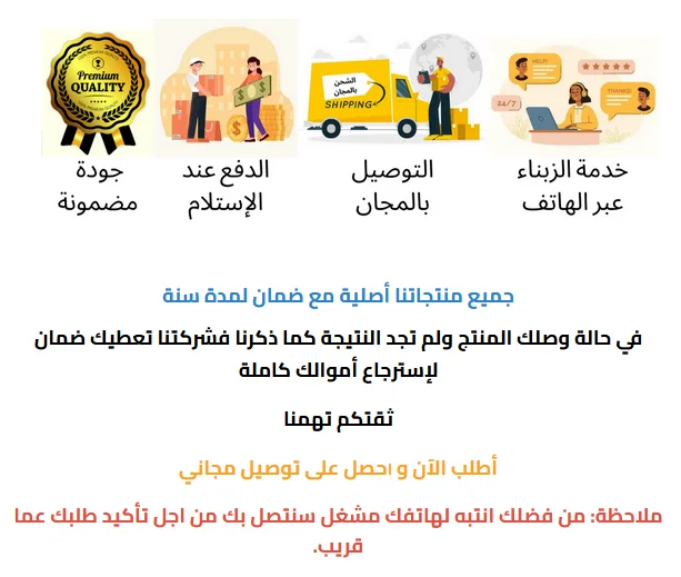 جميع المنتجات المعروضة في متجرنا تخضع لسياسة الاستبدال واسترداد الأموال وفقًا للشروط والأحكام المبينة على هذه الصفحة.