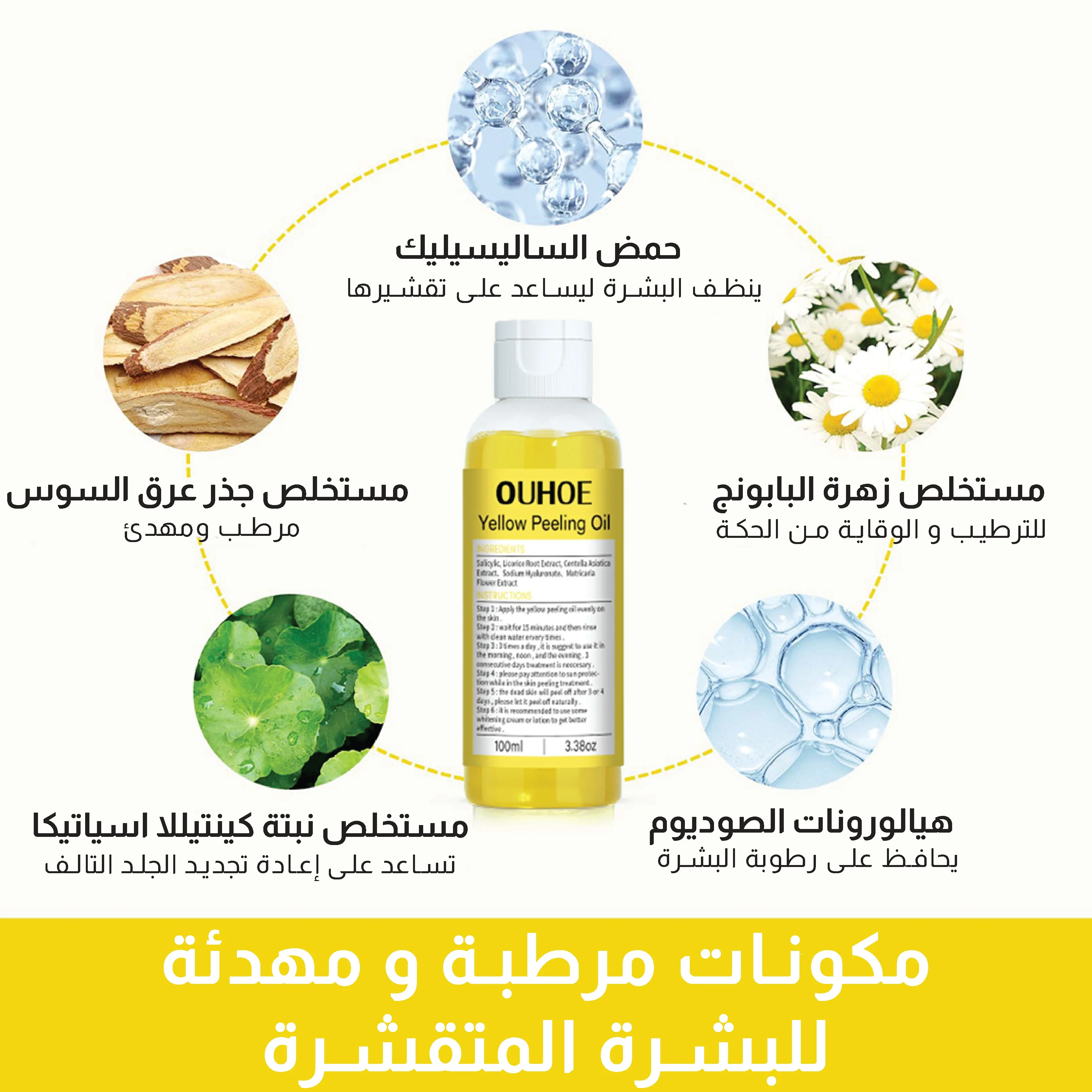 احصل على زيت التقشير الأصفر الأن وتمتعي ببشرة تشع بالصحة والحيوية.